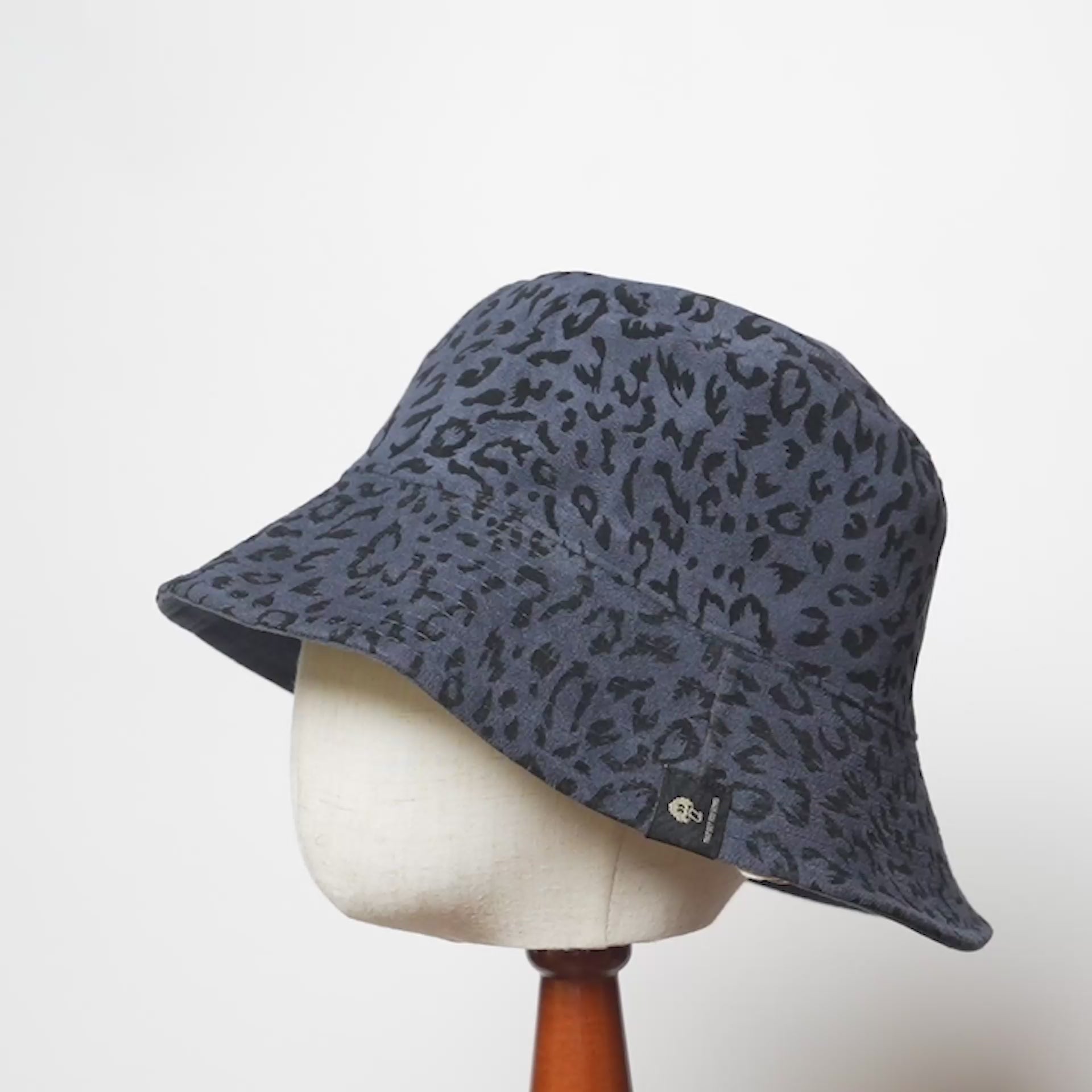 フェイクスエード素材のレオパード柄とツイル生地の無地側でリバーシブルで着用できるハット。締め付けのない、ゆとりのある着用感できれいなシルエットをつくります。