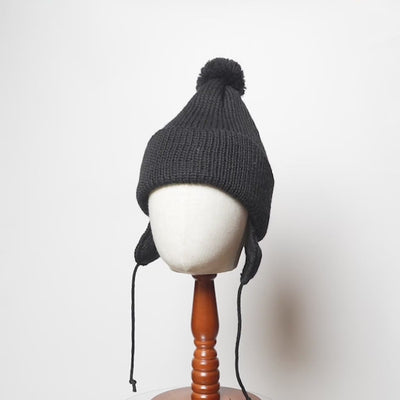 3g Solid Bobcap w/ear Cover&PomPom&Rope | Color_Jet Black | No_hl-25fw-0007_jet black【HIGHLAND 2000_ハイランドトゥーサウザンド】【ネコポス選択可能】