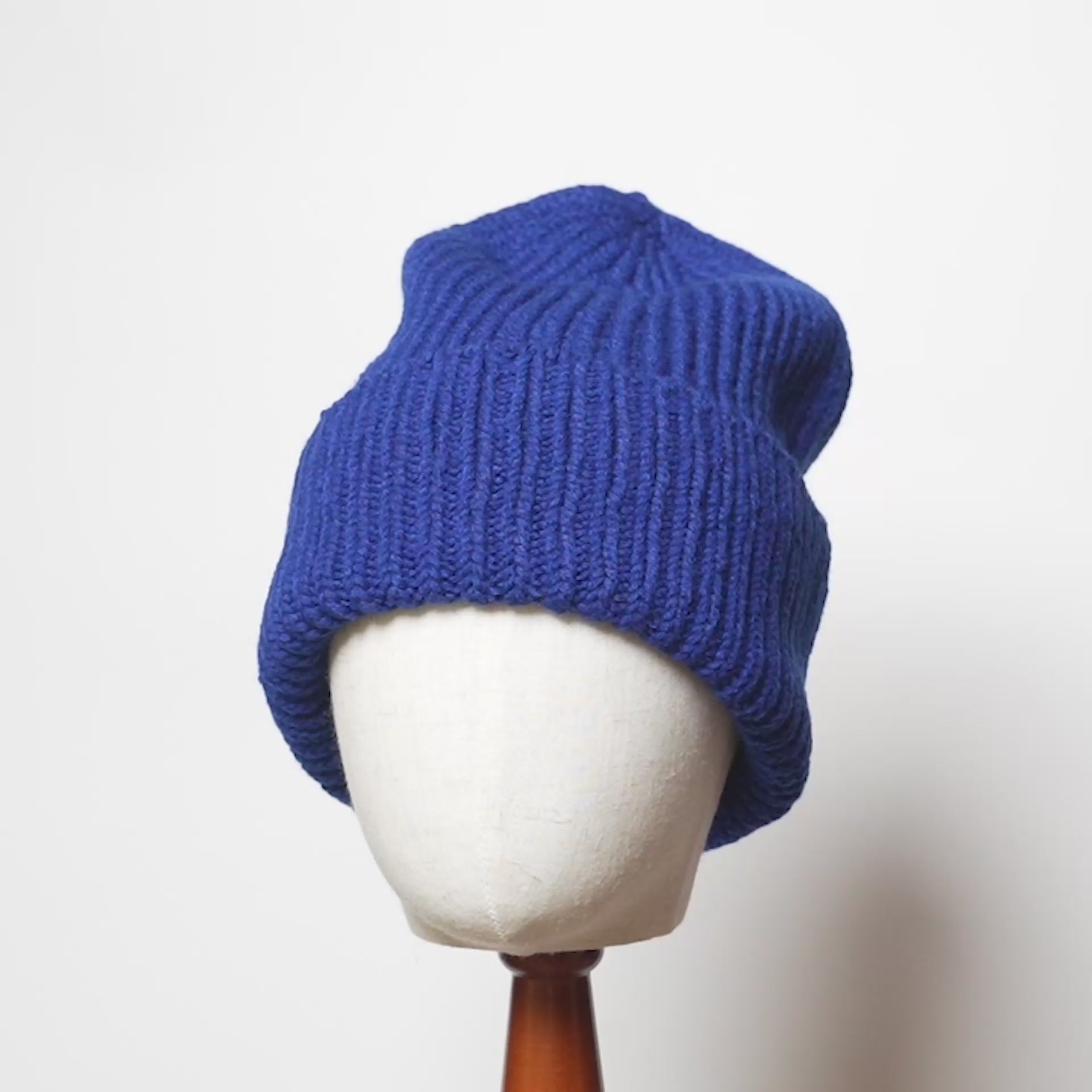ホールガーメントのビッグニットワッチです。 ロウゲージで適度なボリューム感が出るように仕⽴てました。 ホールド感はありながらも⾮常に柔らかいので ⻑時間でもストレスフリーで着⽤できます。 折り返し幅を調節してかぶりの深さをアレンジできます。 中性洗剤を使用してぬるま湯で手洗いすることが可能です。