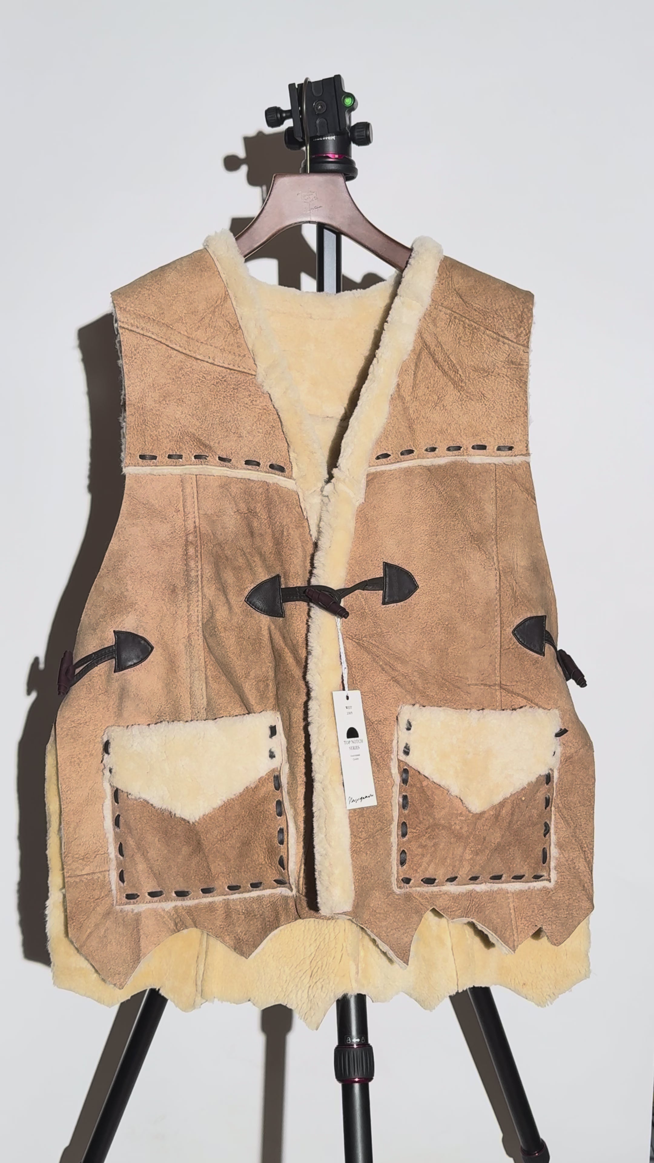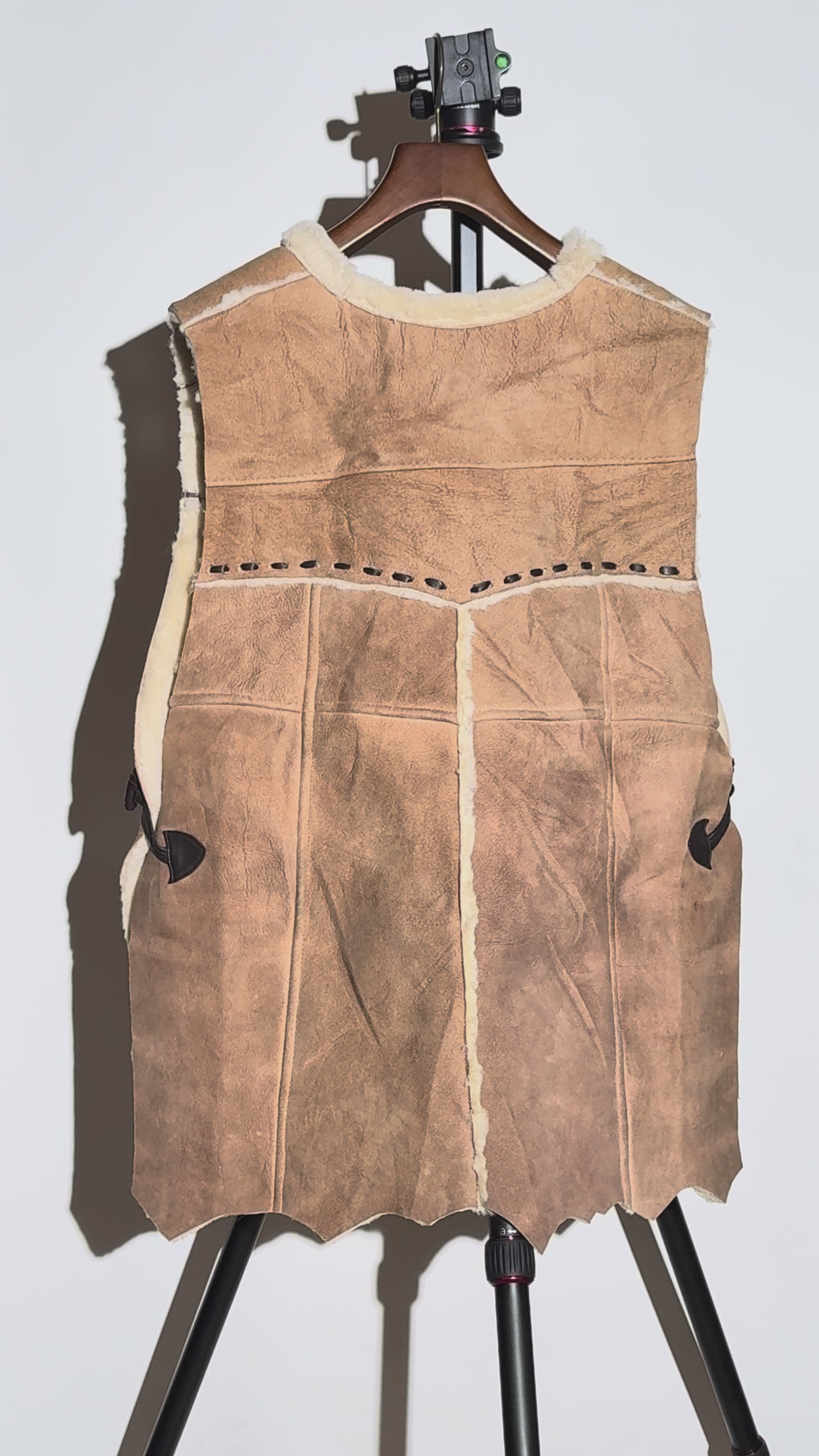 USEDムートンをつなぎ合わせることで原皮のような雰囲気を出しているムートンベスト