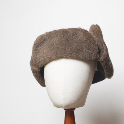 大人のパンクスピリットを感じさせるオリジナルのフリンジウールチェックを使用した軽く暖かいロシアンキャップ。アルパカ混のボアのボリューム感も魅力的。無段階で調整できるレザーベルトもついたユーザビリティさを備えた逸品。